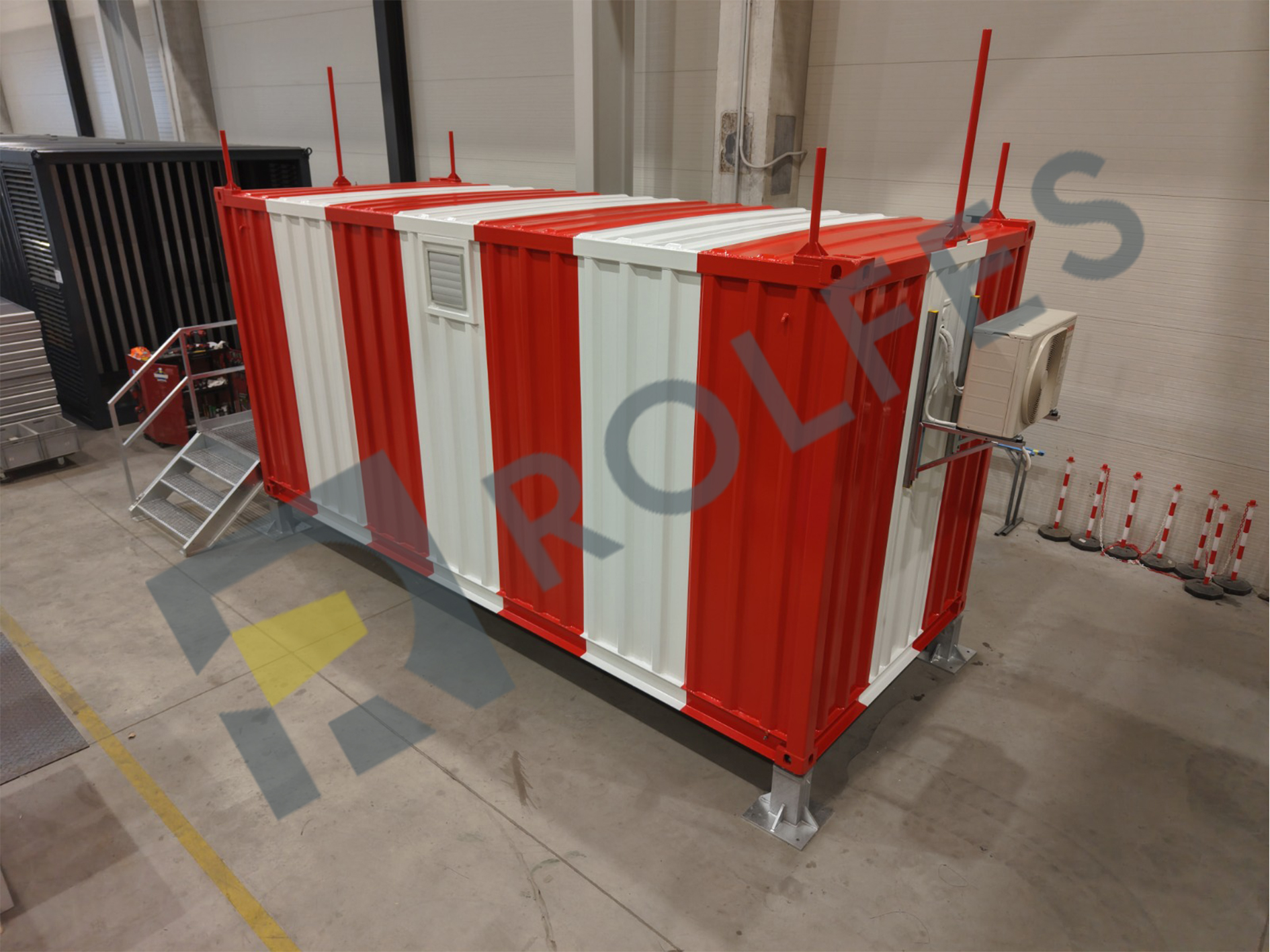 Wir stellen spezialisierte Container zur Unterbringung von Schaltanlagen und Transformatoreneinheiten her. Die Lösung bietet einen sicheren, konstruktiv stabilen und betriebssicheren Raum für elektrotechnische Anlagen.